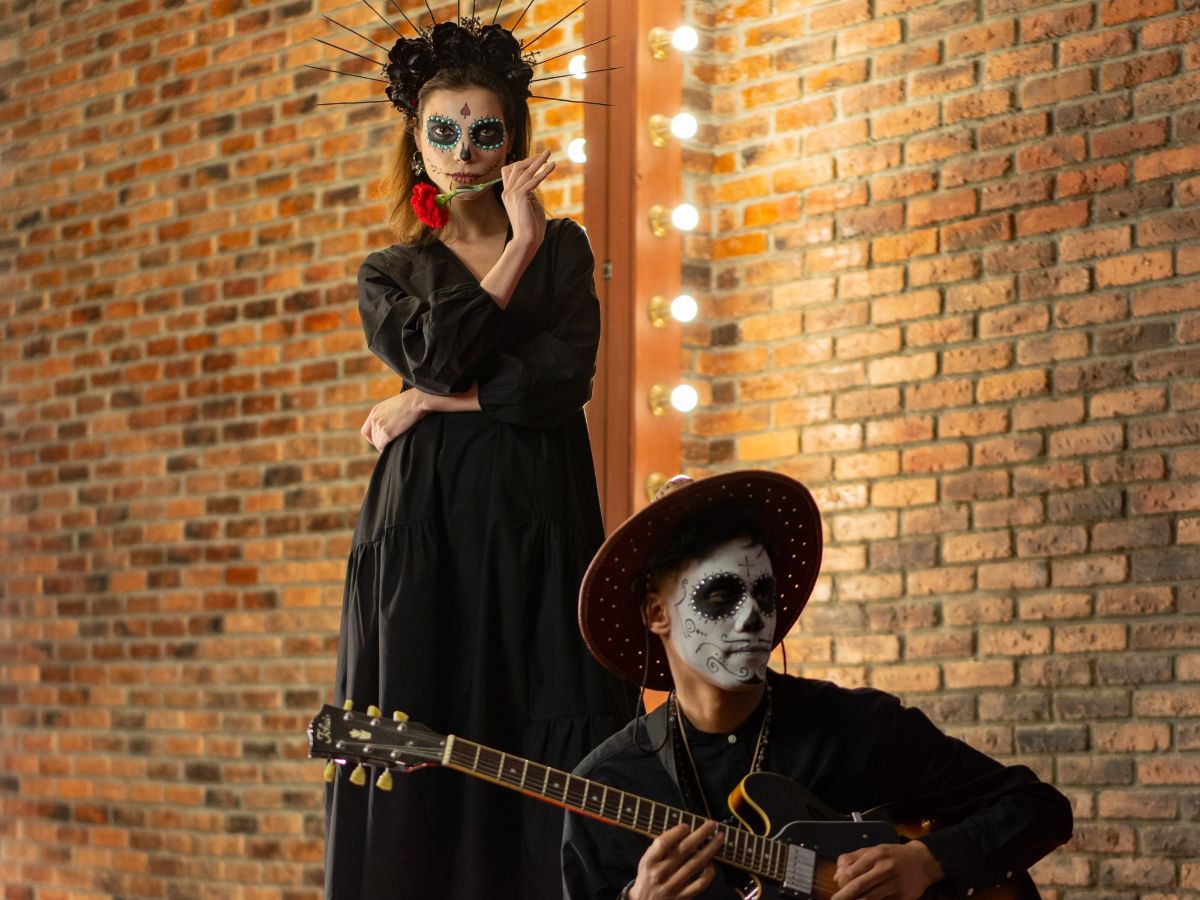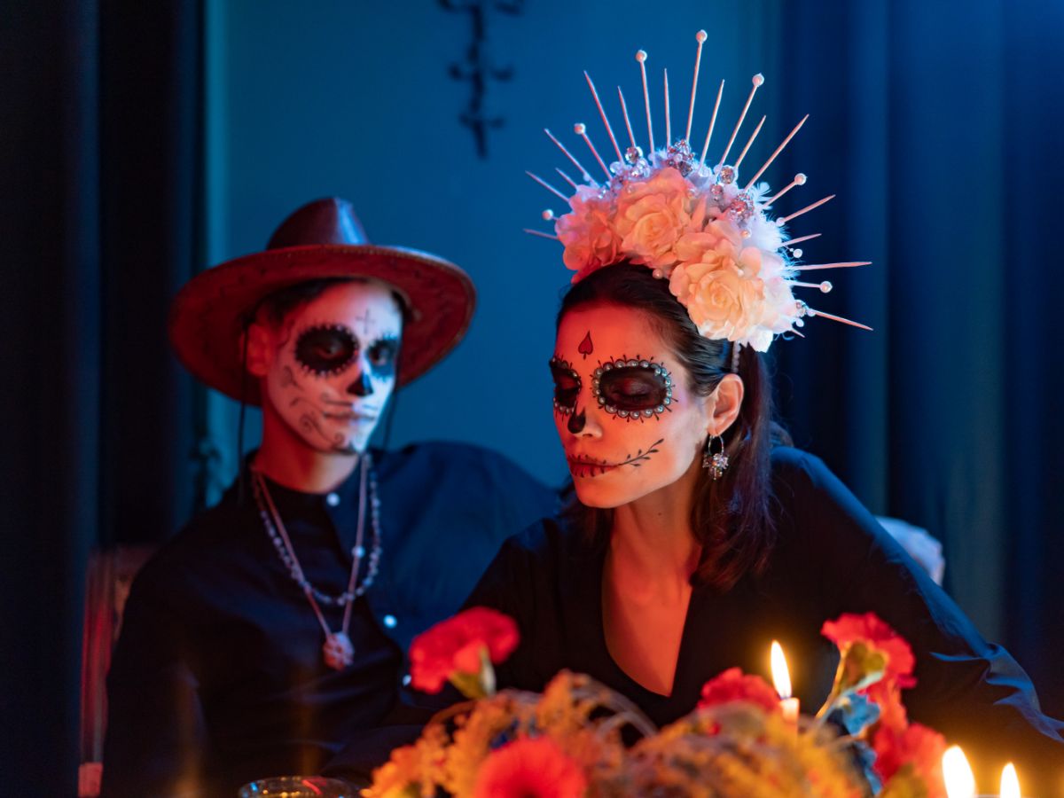 Día de Los Muertos is a holiday that involves family and friends gathering to pay respects and remember friends and family members who have died. This couple in love is not an exception.